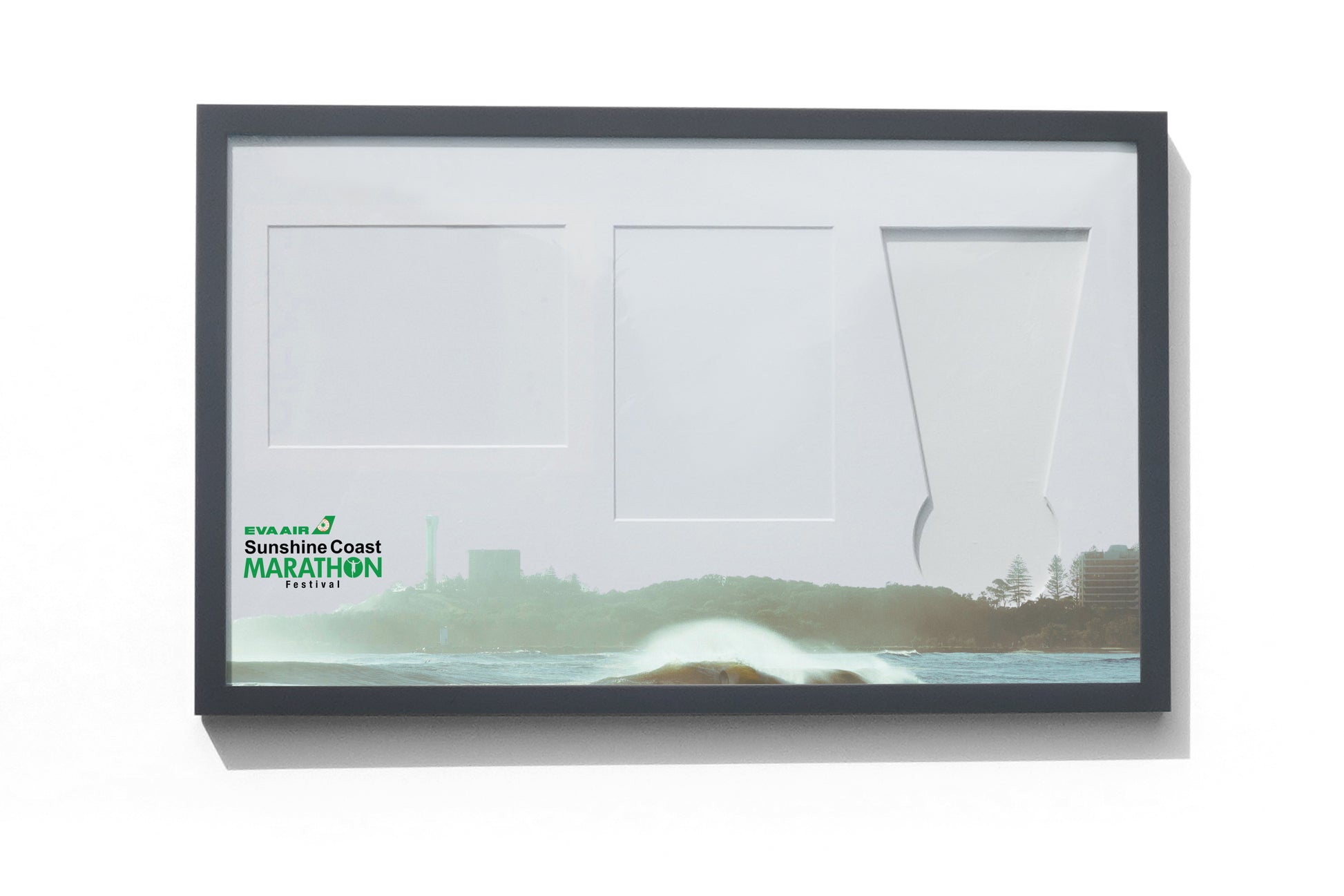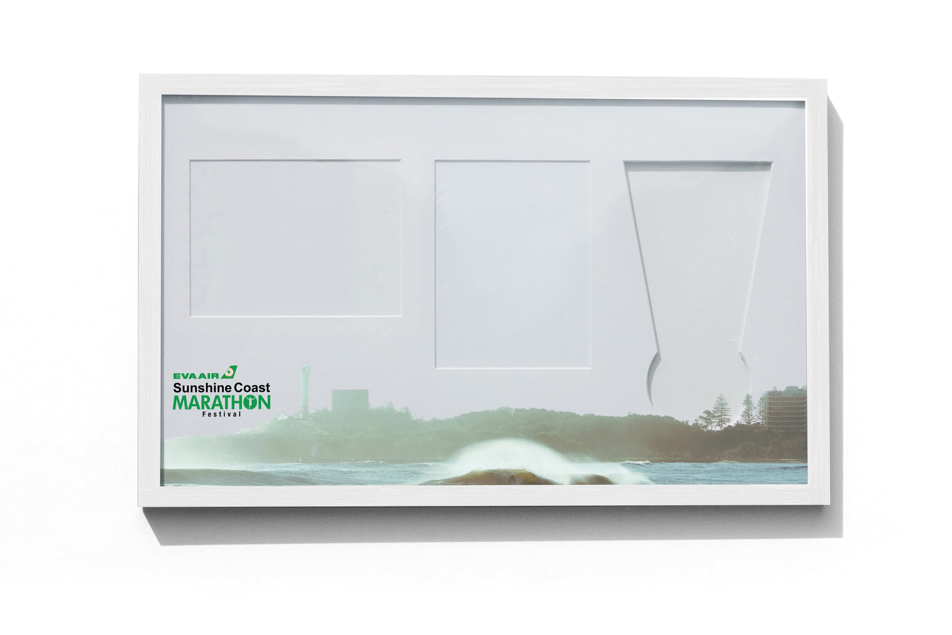 Celebrate your race achievement with our Sunshine Coast Medal, Race Map & Bib Display Frame, a modern, premium display originally designed for the EVA Air Sunshine Coast Marathon in Australia.